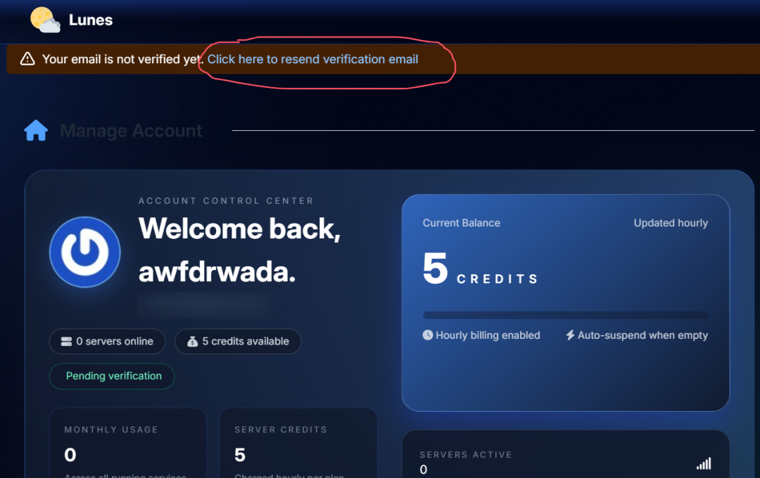 登录进去之后,点击页面上方的”Click here to resend verification email”发送验证邮件激活账户。